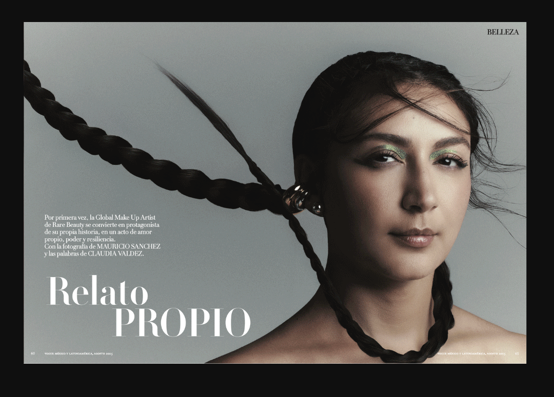 Por primera vez, la Global Makeup Artist de Rare Beauty se convierte en protagonista de su propia historia. Un acto de poder, vulnerabilidad y amor propio radical —publicado por Vogue México.